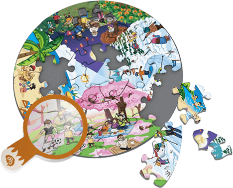 「季節拼圖」搭配「小狐狸放大鏡」,