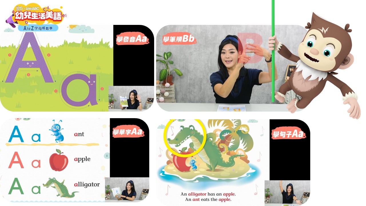 從字母發音、筆順描寫、單字練習和情境語句教學,引領孩子學習A到Z。