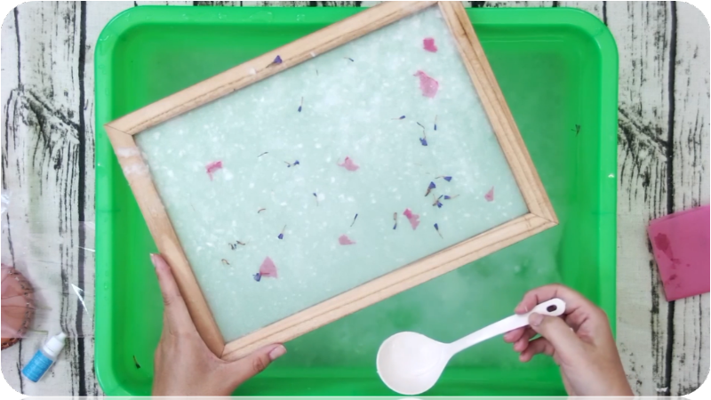 在紙漿內加入少許乾燥花和彩色棉紙,製造出專屬於自己的獨特紙張!