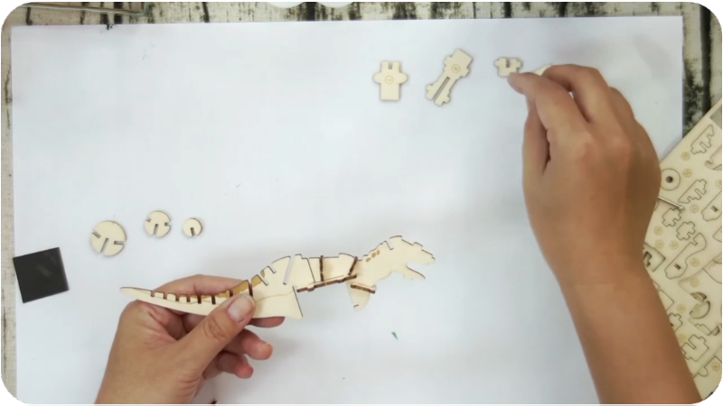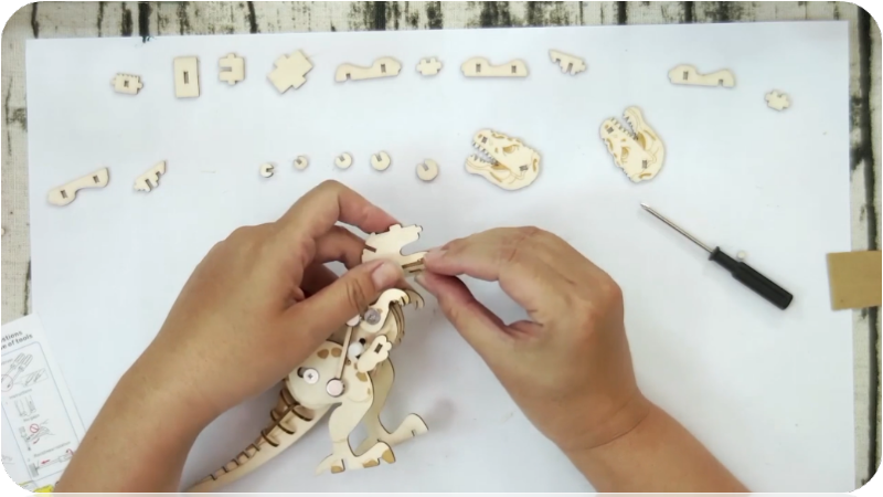 每組皆有:木質拼圖、螺絲、螺絲起子、發條、砂紙、英文說明書