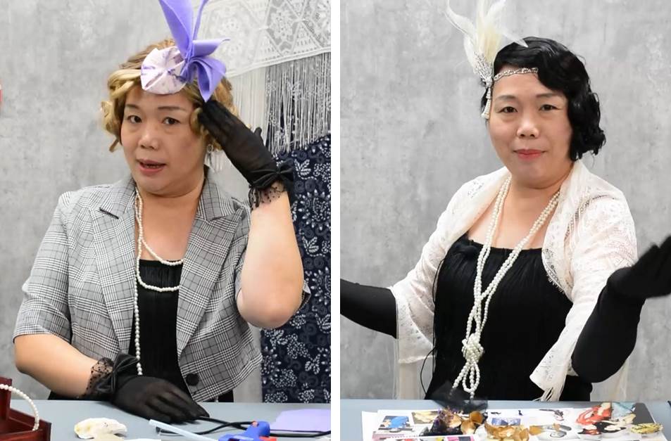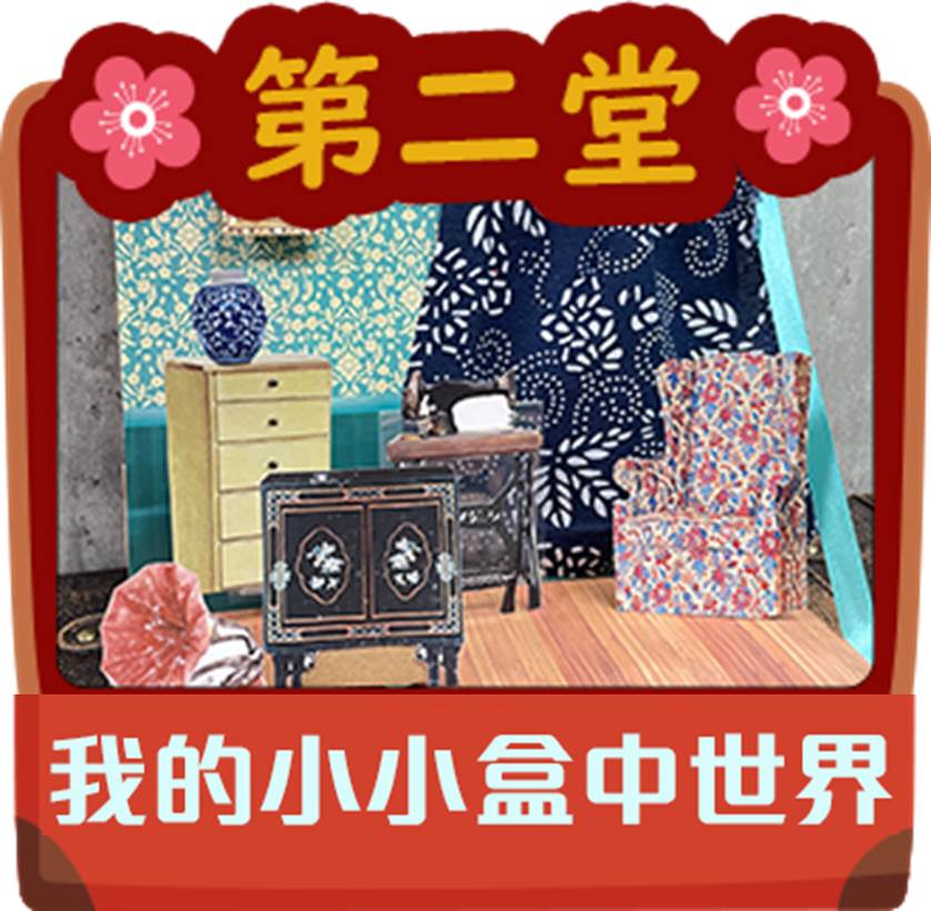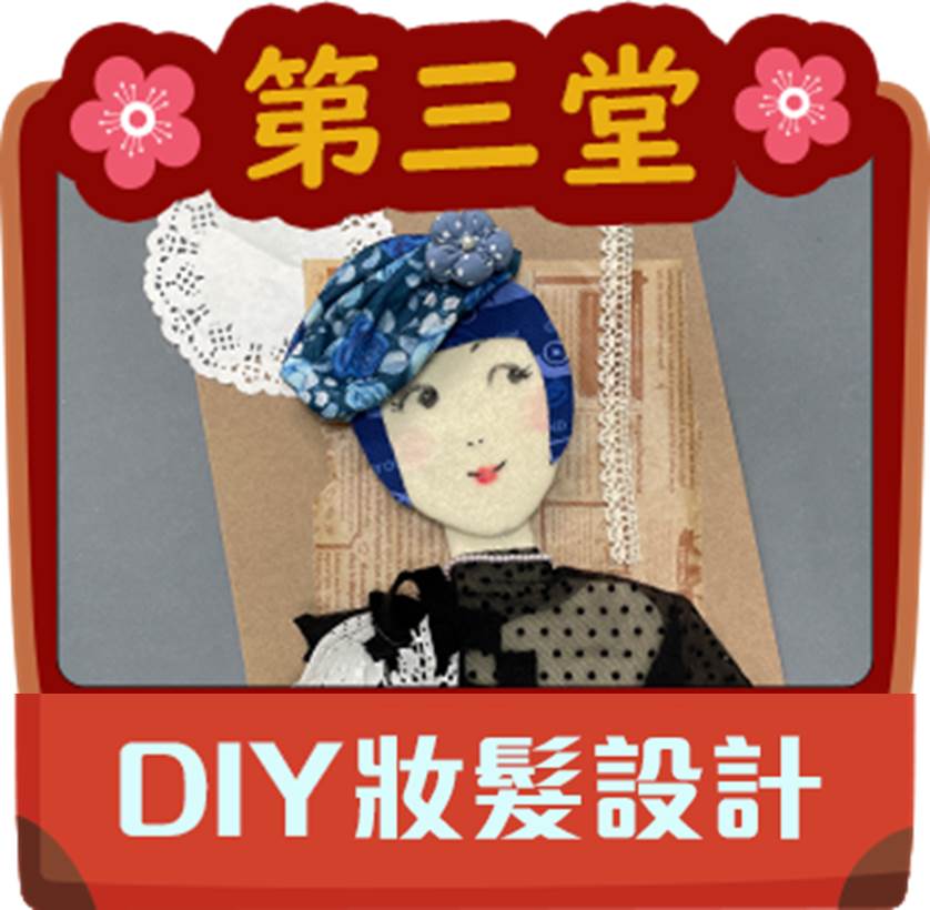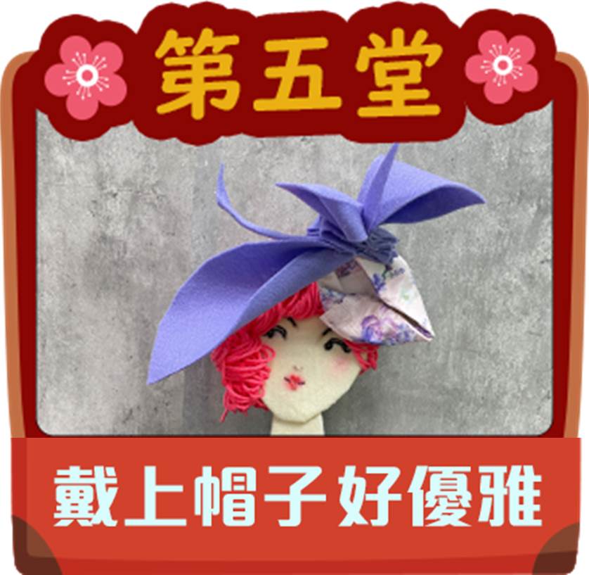 由《小紅帽藝術天地》的小紅帽老師主講,課程中,將帶領孩子們用毛筆完成膠彩畫,用一般紙箱製作好玩好收納的立體書,再用不同布料素材裝扮出一位典雅女子並為她設計妝髮,以及認識100年前台灣融合了中西日的服飾與搭配作品,最後再一起製作如同英國皇室般的特色裝飾帽!