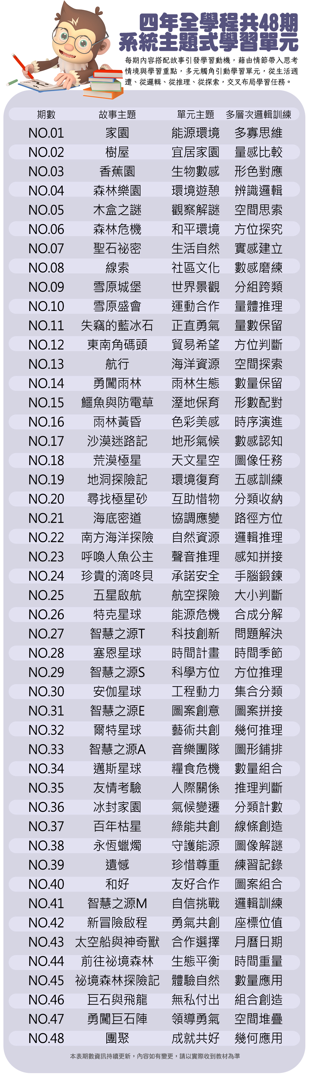 ✦分齡教材:閱聽學習單1張、邏輯力學習單4張