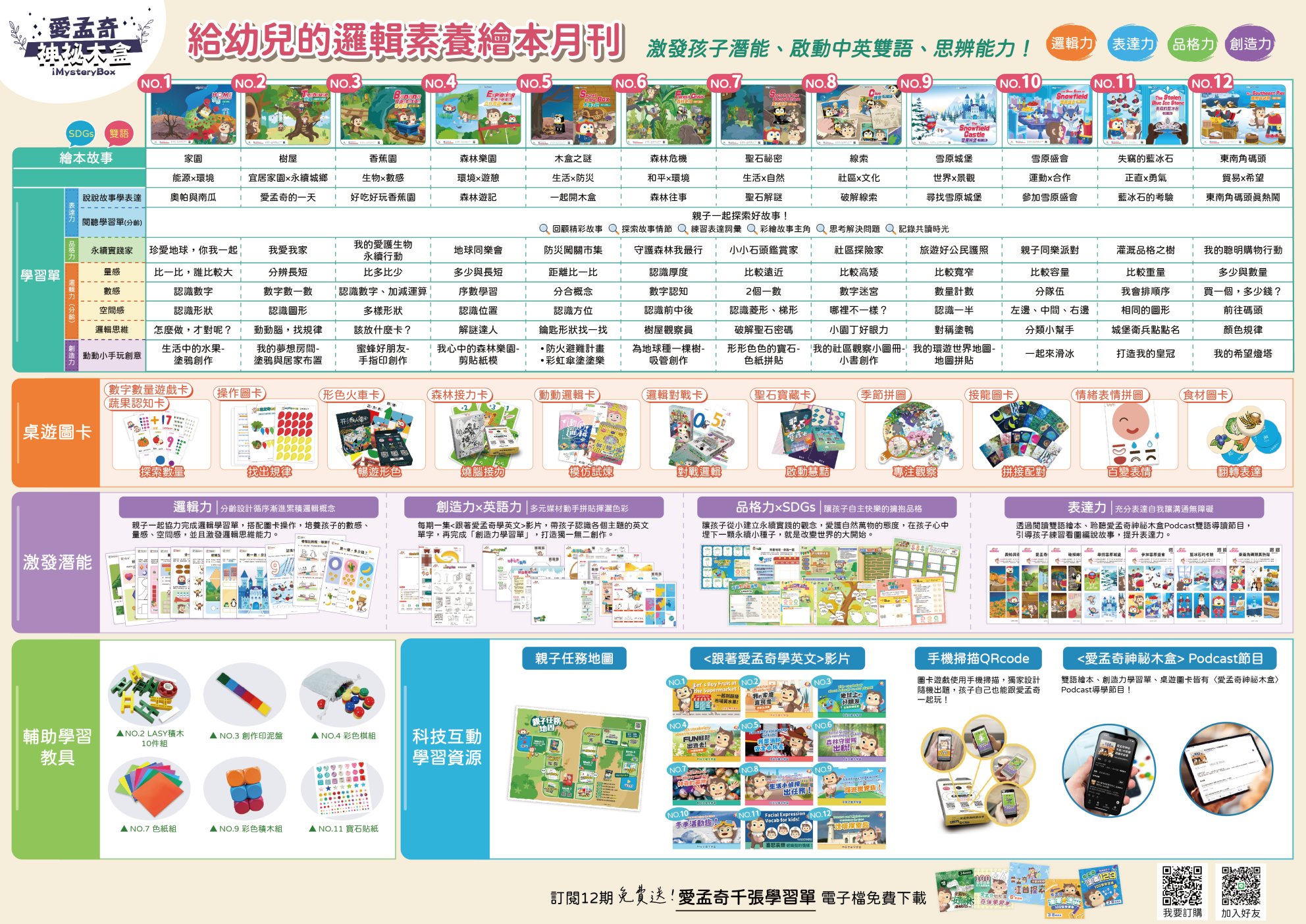 ✦分齡教材:閱聽學習單1張、邏輯力學習單4張