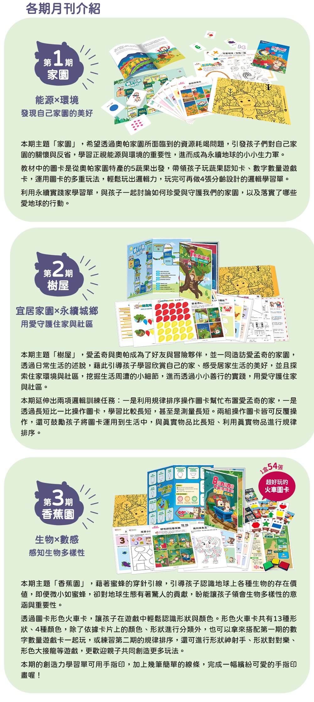 各期內容會分裝於各專屬袋內,可依序開啟給孩子學習使用。