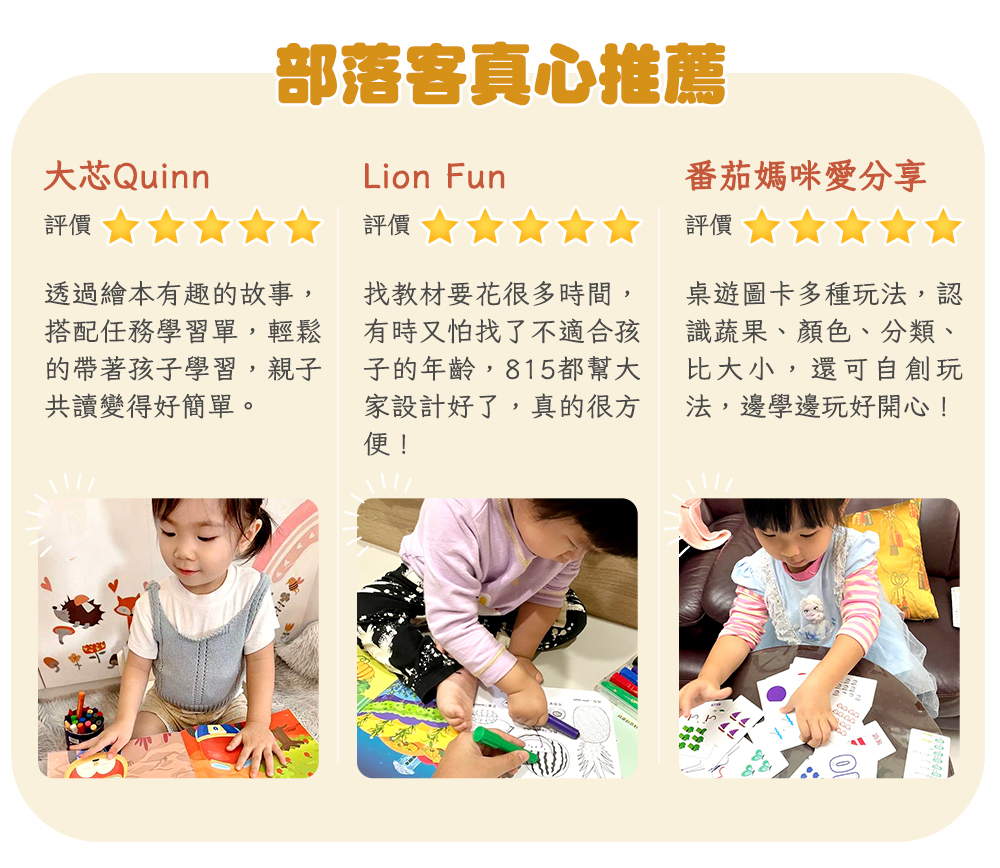 - 如覺分齡之學習單內容太難或太簡單,可洽詢客服或小編索取其它年齡段之學習單電子檔參考使用之。