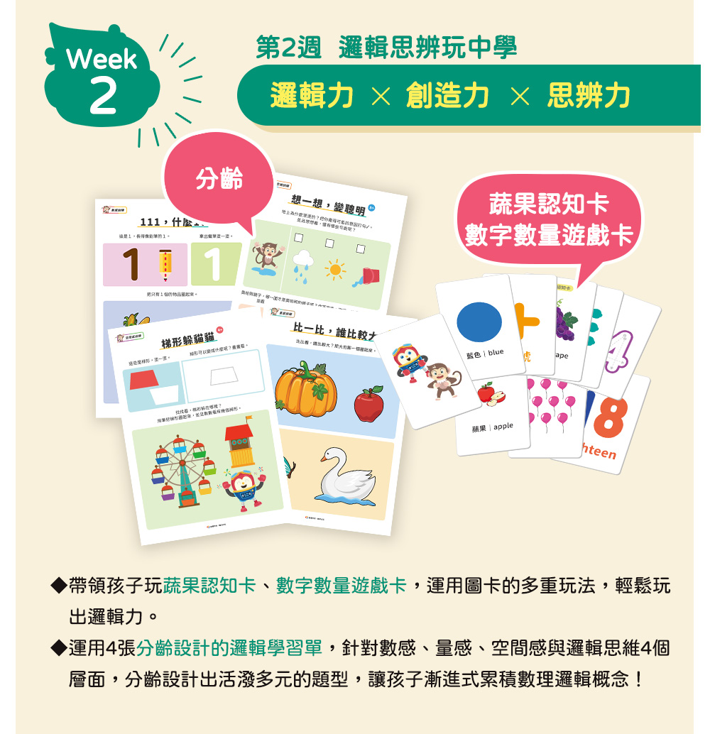 ✦分齡教材:閱聽學習單1張、邏輯力學習單4張