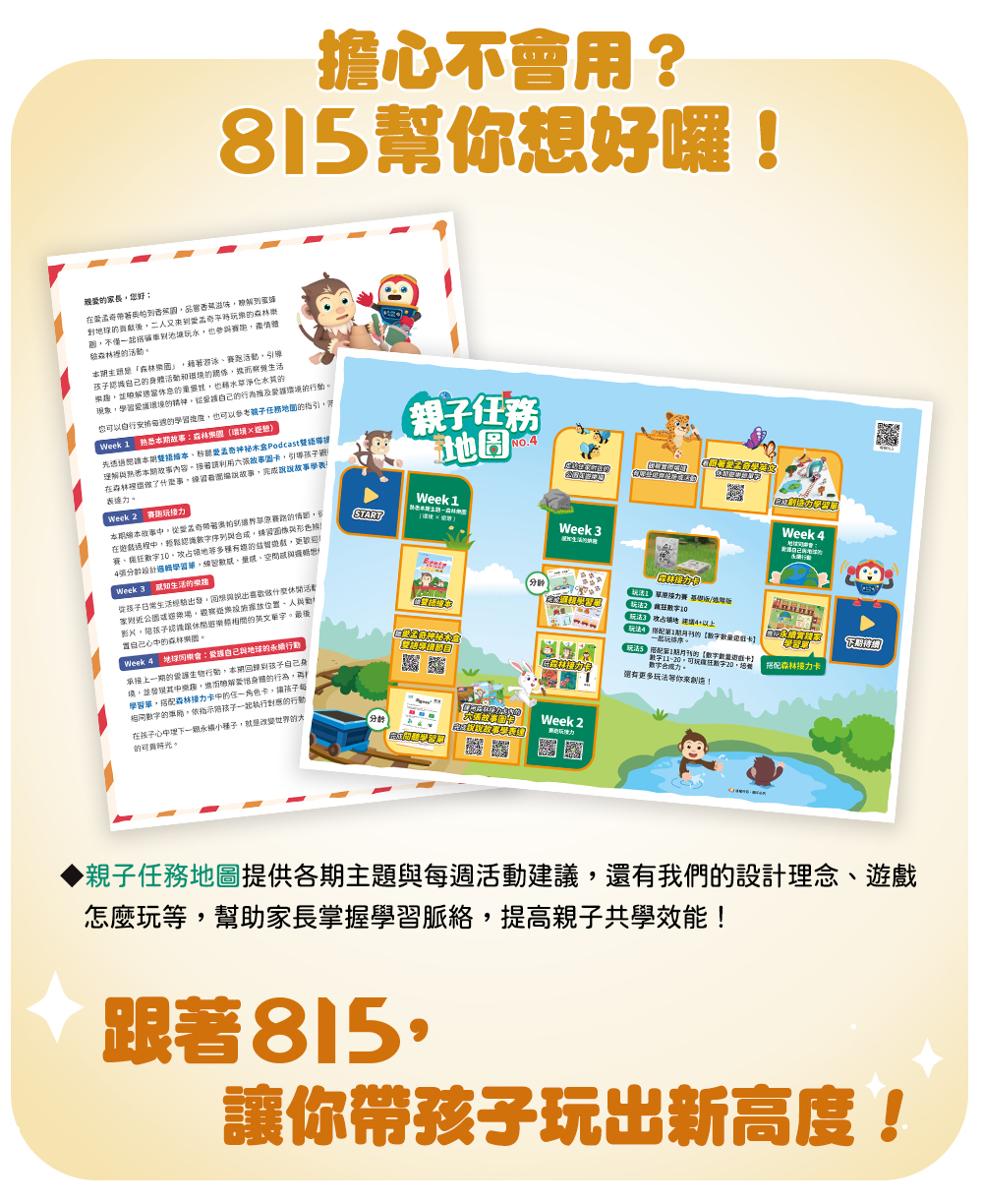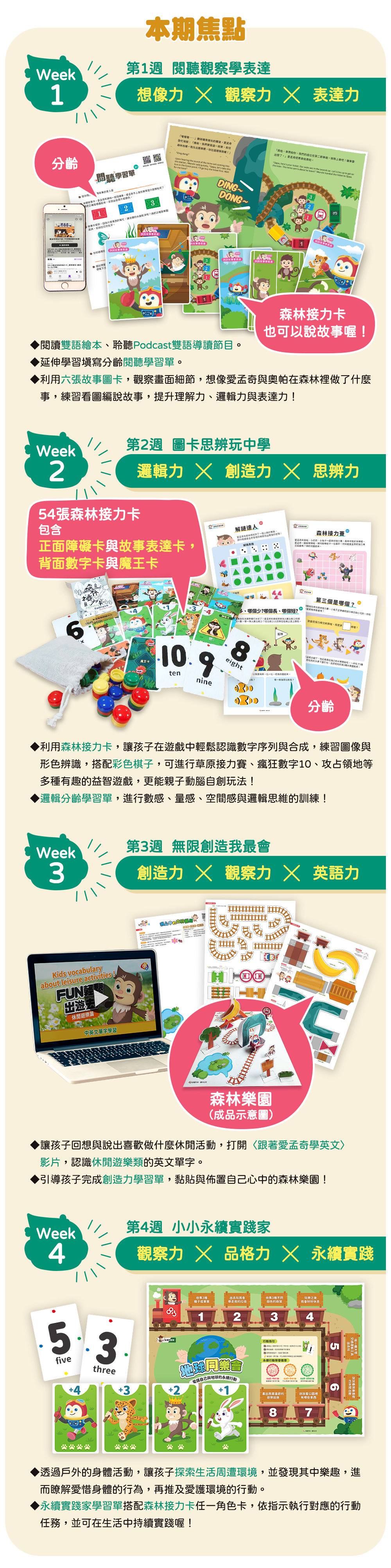 ✦分齡教材:閱聽學習單1張、邏輯力學習單4張