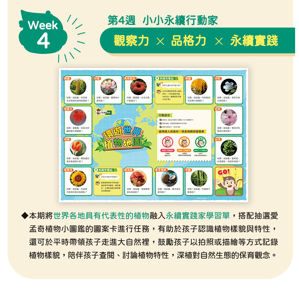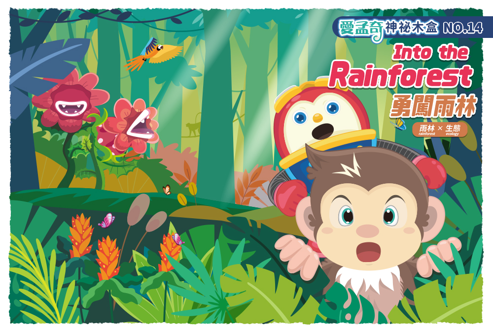 本期主題是「勇闖雨林」,以充滿色彩的花朵叢林展開故事,呈現雨林生態的豐富與美麗,也提醒其中潛在的危險性,強調愛護雨林生態的重要性與戶外活動的安全性,結合植物相關的學習內容,期盼親子一起安全探索自然,建立欣賞與愛護植物的觀念。
