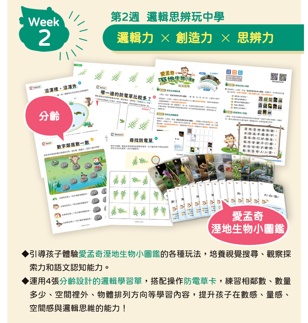 ✦分齡教材:閱聽學習單1張、邏輯力學習單4張