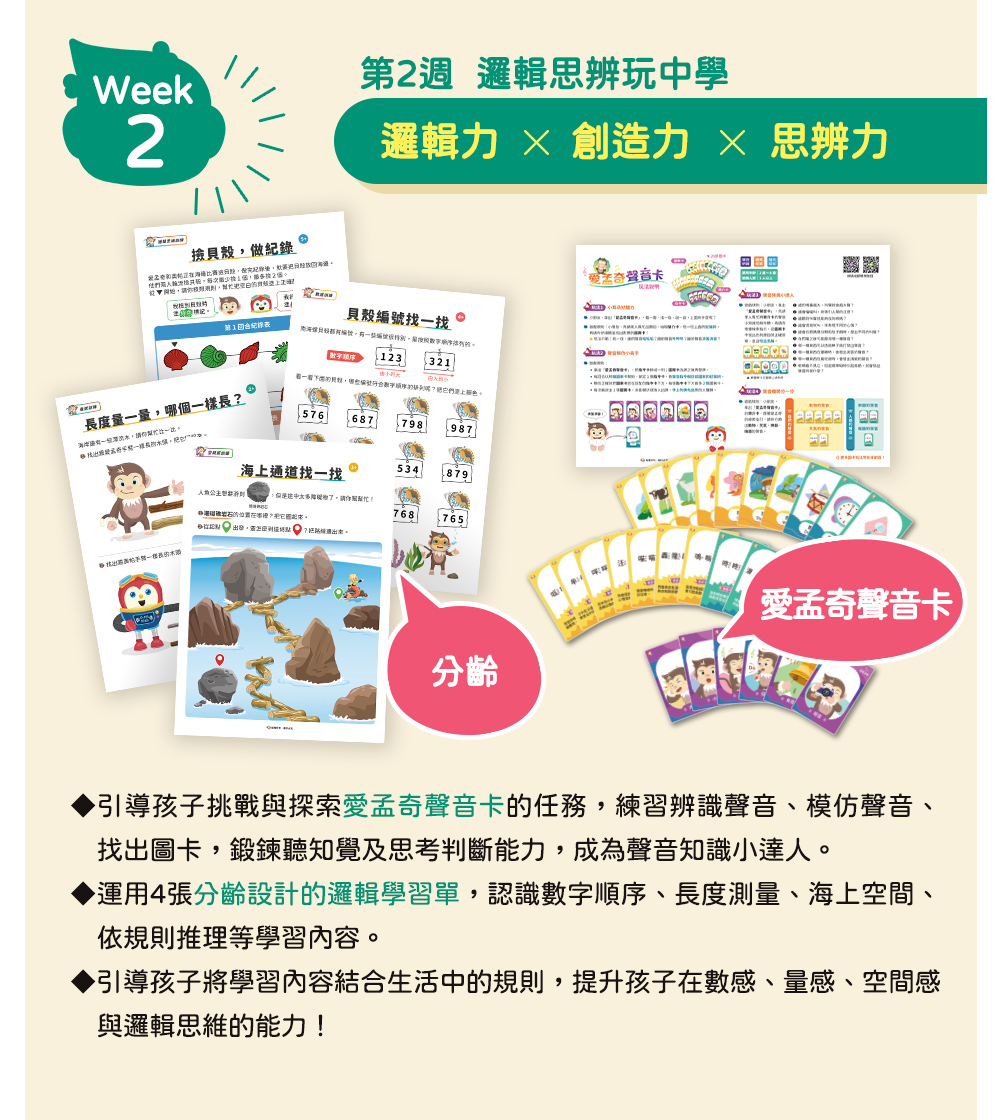 ✦分齡教材:閱聽學習單1張、邏輯力學習單4張