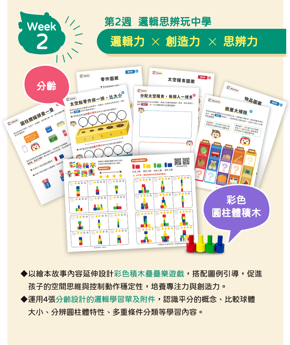 ✦分齡教材:閱聽學習單1張、邏輯力學習單4張