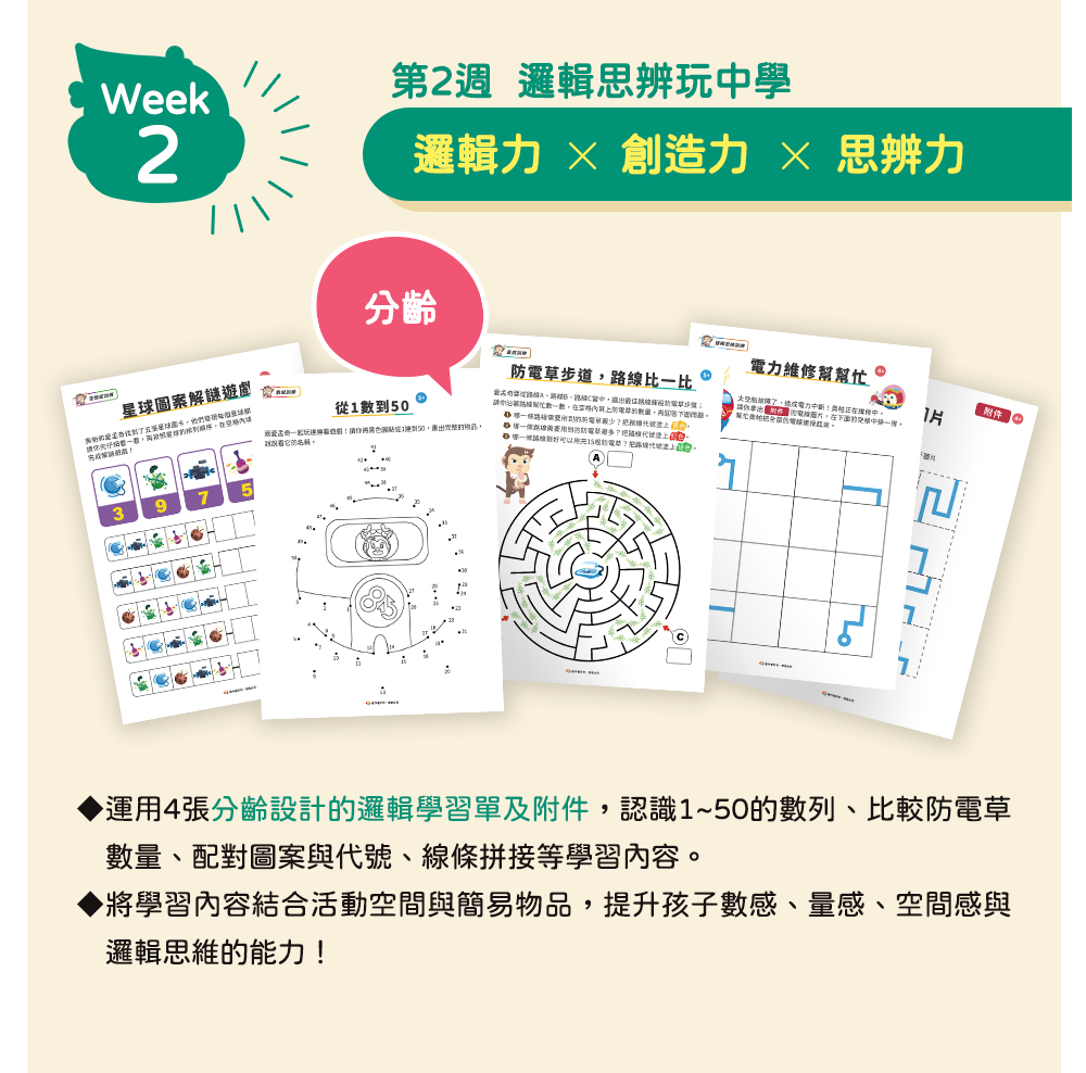 ✦分齡教材:閱聽學習單1張、邏輯力學習單4張