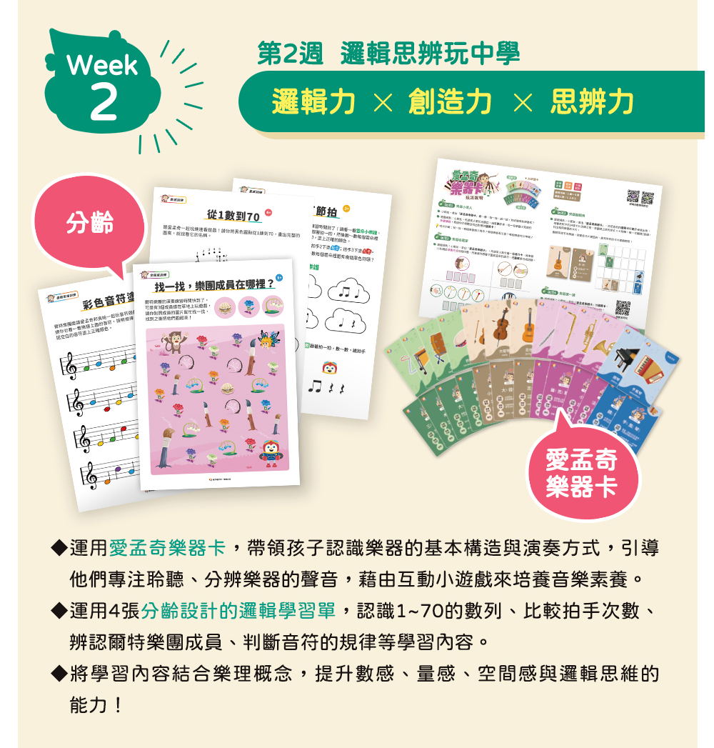 ✦分齡教材:閱聽學習單1張、邏輯力學習單4張