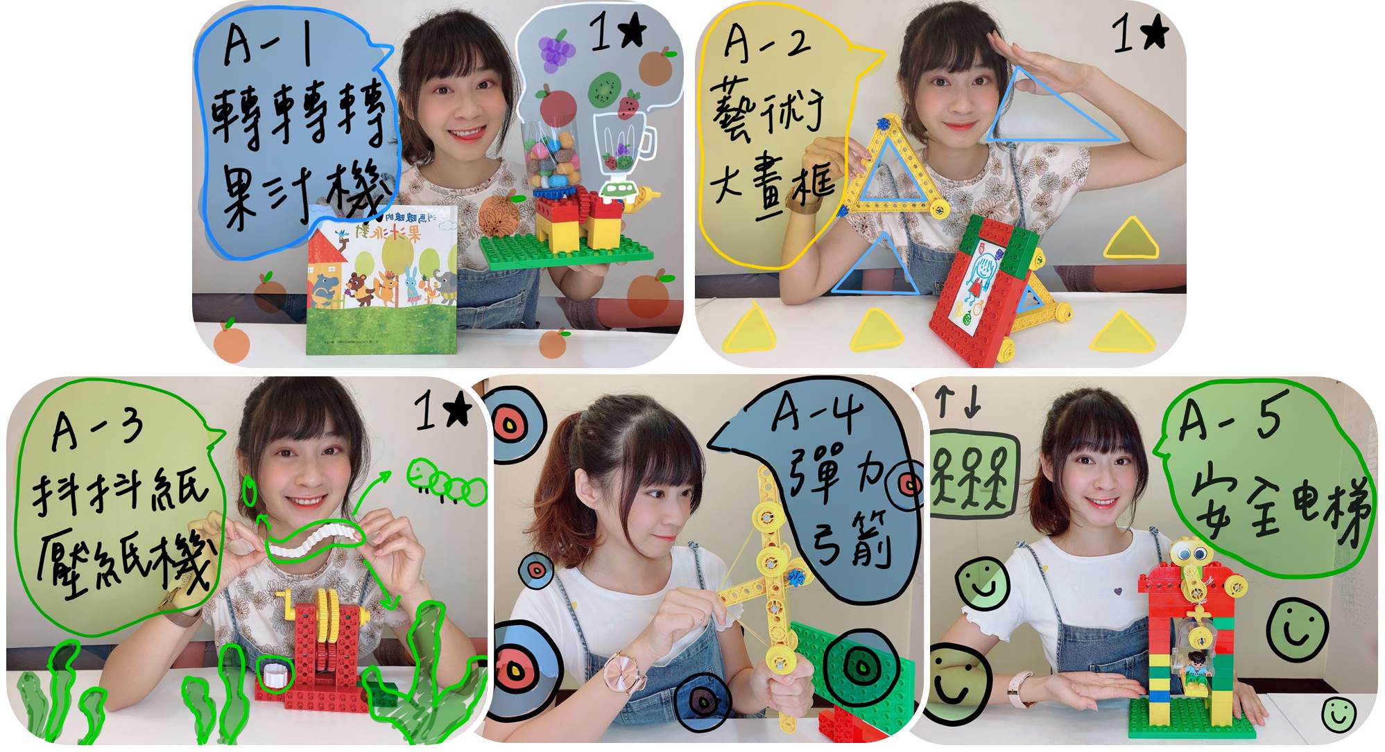 每堂課設計與生活相關的模型,貼近孩子生活、產生共鳴,同時也滿足孩子扮演遊戲之需求,進而學習簡單的機械原理,例如齒輪比、皮帶應用、柔性、剛性結構等。