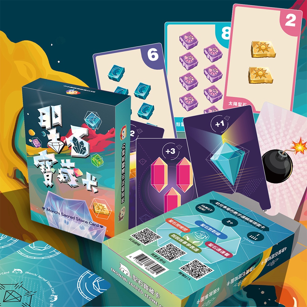 適合2-6歲幼兒單獨玩或與家庭成員共玩,共包含54張有趣的圖卡,每款卡片都有著不同的聖石數值、寶石數感任務學習點,即興交叉運用不同顏色聖石的數量,在不同數量間,搭配推理與即時運算的任務引導後,讓孩子更能在圖卡遊戲中感受繪本情節的解密體驗。
