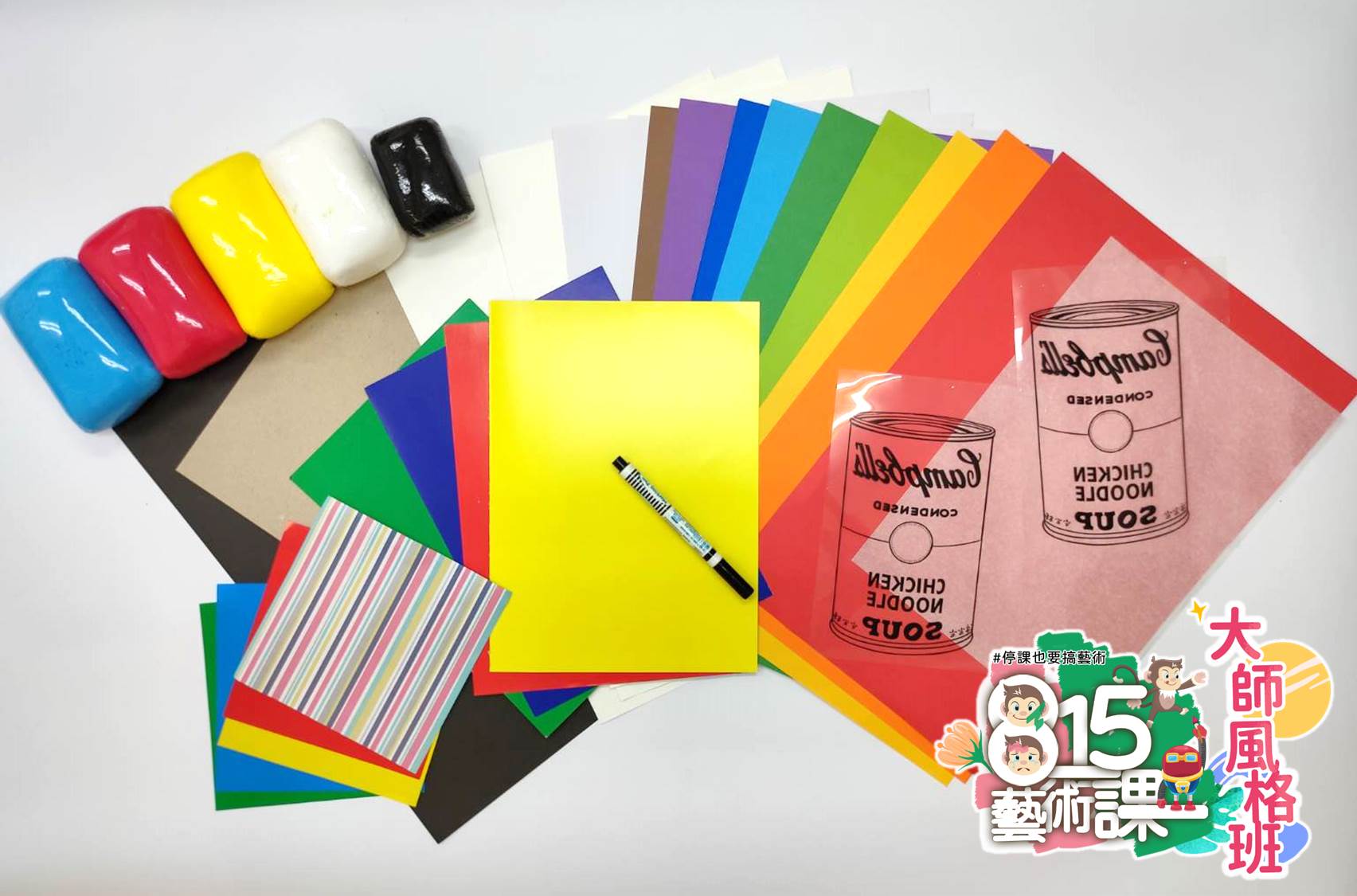 內容物:8開圖畫紙、8開博士紙、8開彩色書面紙、16開亮面西卡紙、16開灰卡紙、罐頭影印透明片、空白透明片、色紙、黑色奇異筆、輕黏土、泡棉膠