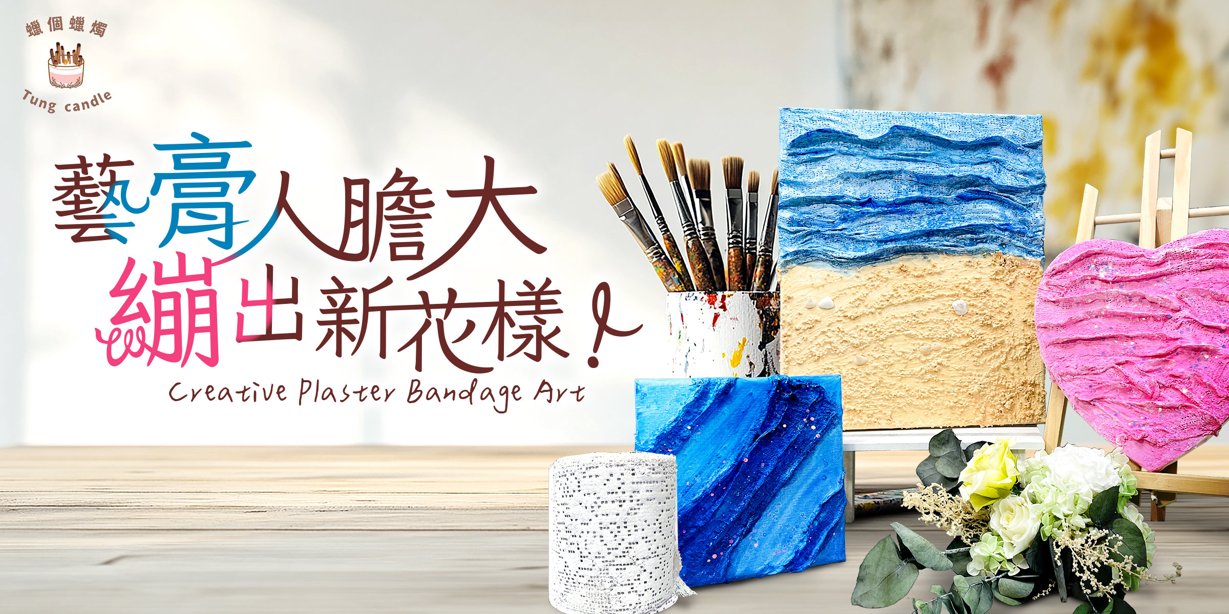 本系列課程,由 蠟個蠟燭的彤彤老師主講,在課程中,老師將從最基本的工具介紹、石膏保存介紹起,以及如何運用石膏繃帶做出不同的紋理效果;再引導大家運用畫筆、刷子等工具,完成平面上色與縫隙補色等技巧,以創造出豐富層次感的美麗藝術作品!