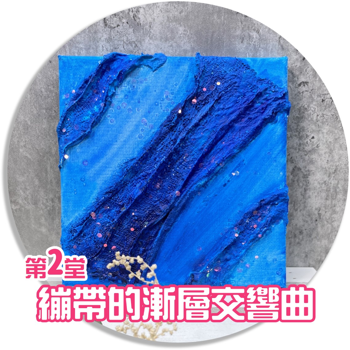 《繃帶的漸層交響曲》運用石膏繃帶做出層次分明的立體結構,再繪製出深淺變化的漸層效果,交織出充滿節奏感與藝術氛圍的創作。