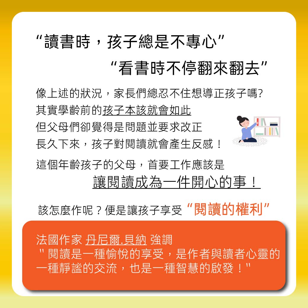 又或者當面對孩子已經不愛閱讀時又該怎麼辦?其實閱讀是為了培養孩子自主學習的能力,所以並不能單純地使用強迫學習方式,當孩子還不能勝任閱讀工作時,家長一定要有些技巧,今天,就讓我們依循法國學者的原則,一起來讓孩子愛上閱讀!