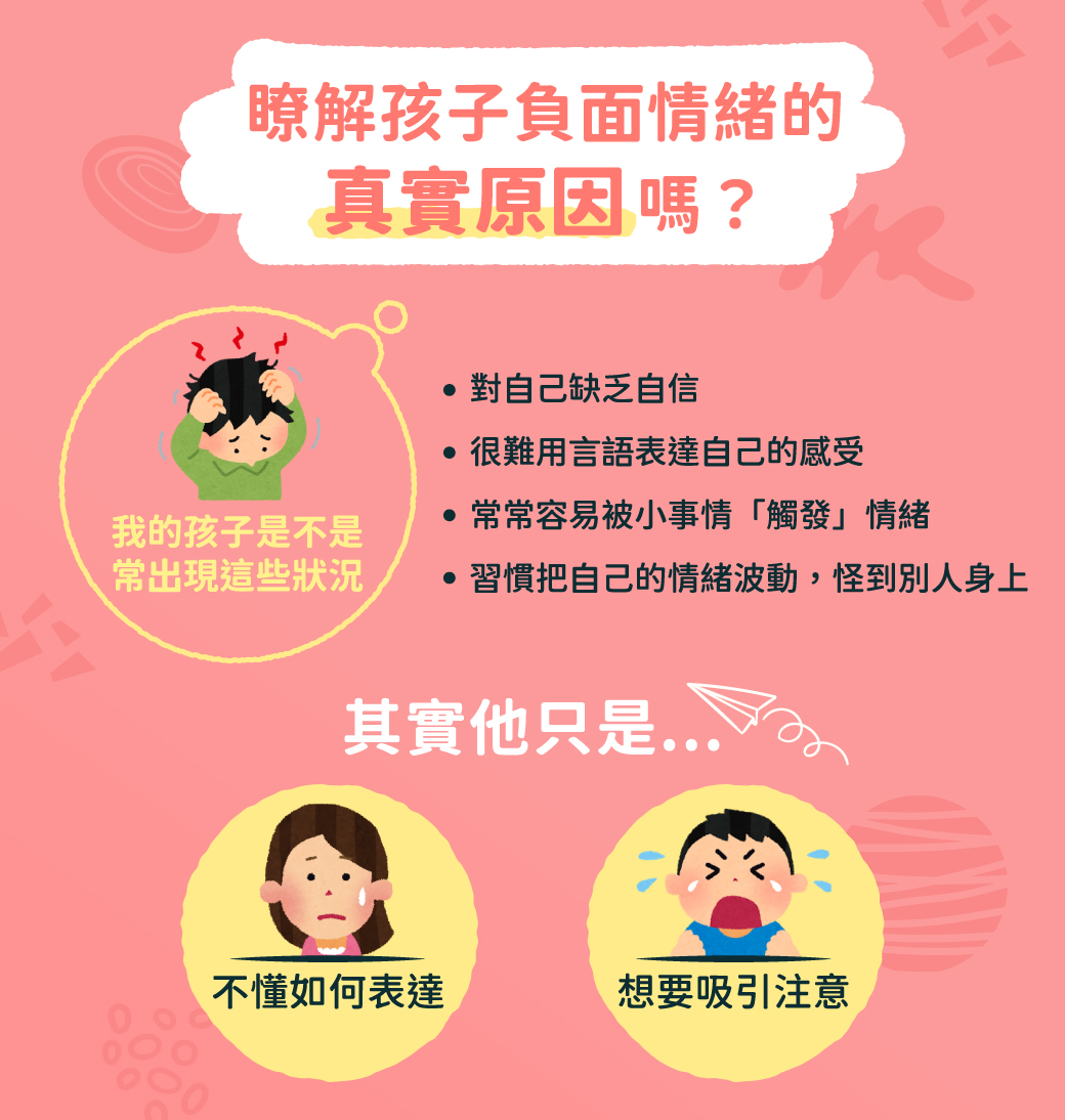 如果爸媽不瞭解孩子情緒表達的原因,很可能也會影響到自己的情緒,結果罵了孩子導致家庭氣氛不佳。這樣不但無法安撫孩子,更會讓爸媽陷入「怎麼會無法控制情緒」的懊悔中。