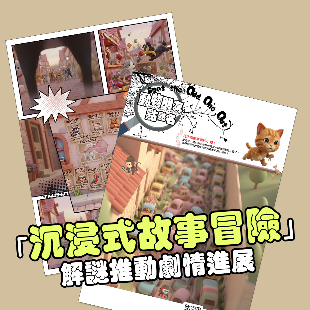 不同於枯燥的單頁練習,以「找出大貓朋友、救援小貓、找到為非作歹的壞人」的故事任務結構串聯全局。孩子不再是被動寫作業,而是化身為故事主角,透過解謎推動劇情進展,極大地提升了孩子的學習參與度與專注力。