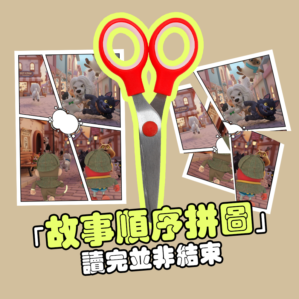 故事讀完並非結束!產品特別設計了「六頁漫畫剪接」功能。孩子可以將漫畫剪開,重新排列組合進行「故事順序拼圖」,訓練邏輯推理能力,並透過動手剪貼提升手部精細動作發育。