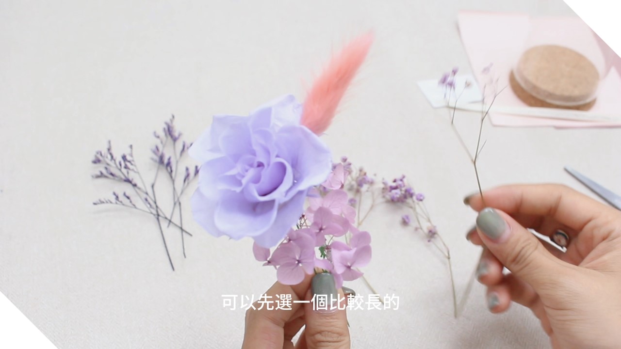 這次老師幫大家準備了《許願瓶永生花束》,完成後可以將願望寫下,搭配自己用心製作的永生花束,期待有一天可以實現喔!