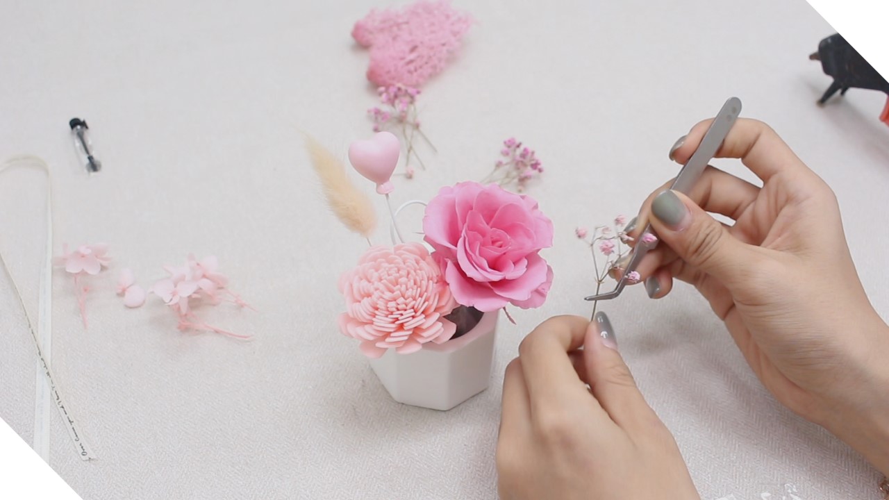 這次老師幫大家準備了《永生花擴香便箋盆栽》,完成後可以滴上自己喜愛的香氛,搭配精心插上的永生花,放在房間或床頭,讓每天都在香氛中甦醒~迎接美好的一天!