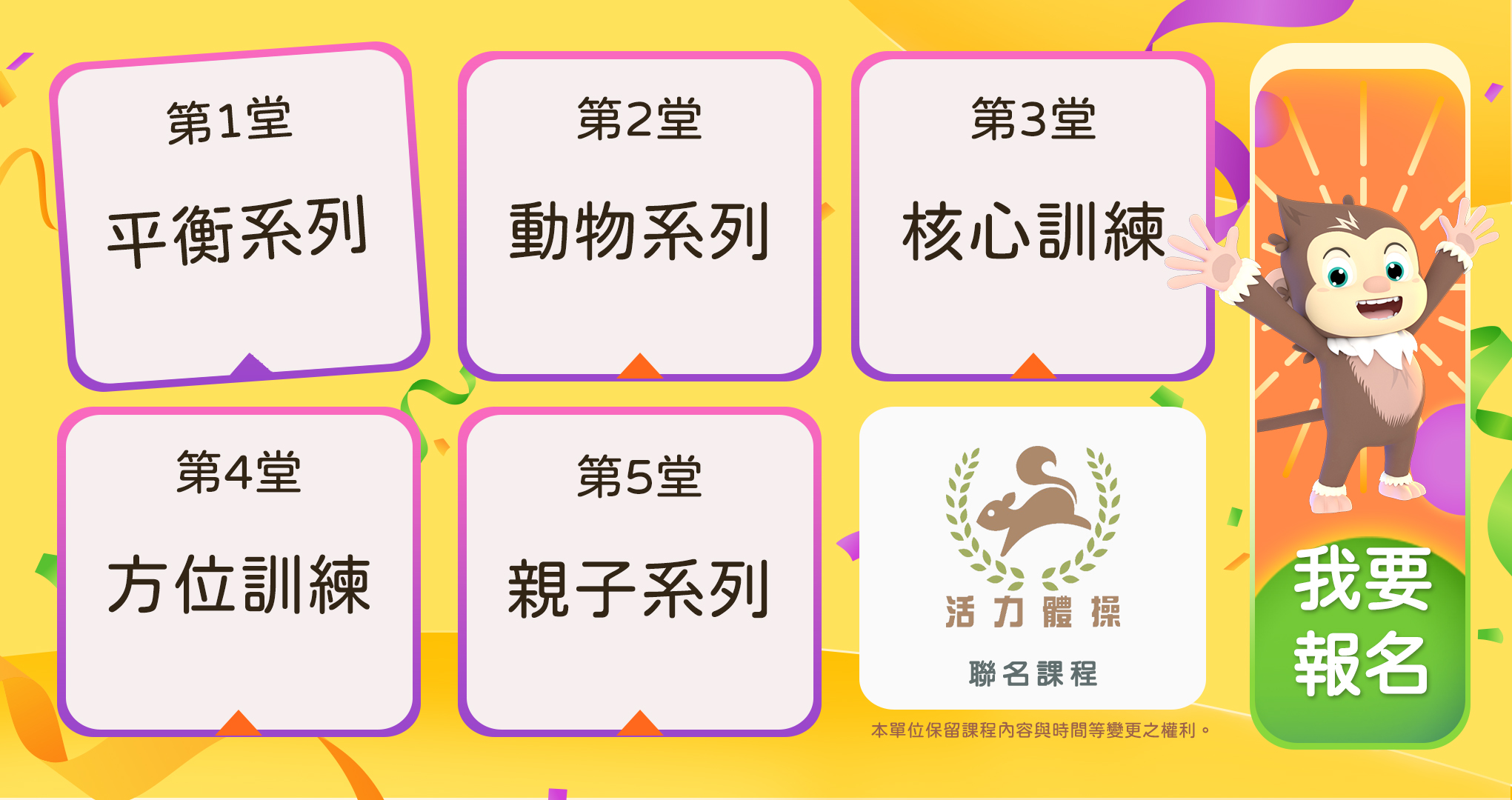 815活力體操課由 中華民國活力體操協會 專業教練系統式帶領爸媽和孩子在家也能玩體操,從各種體操運動中訓練身體基礎,鍛鍊孩子全面性的身體能力!研究指出,選「對」運動,養成固定運動習慣,能增進體能及腦力的發展,更能讓孩子專注力提升!