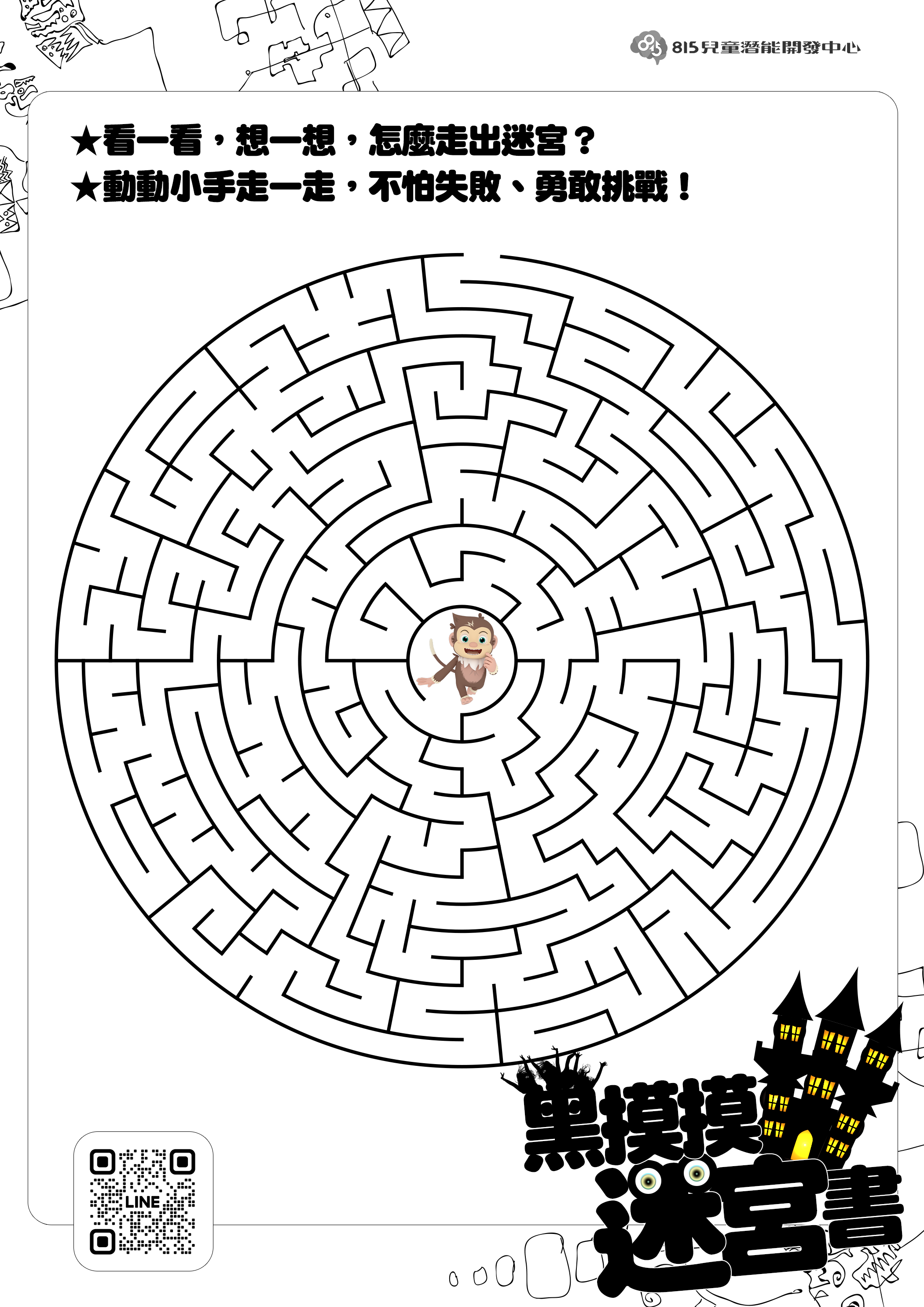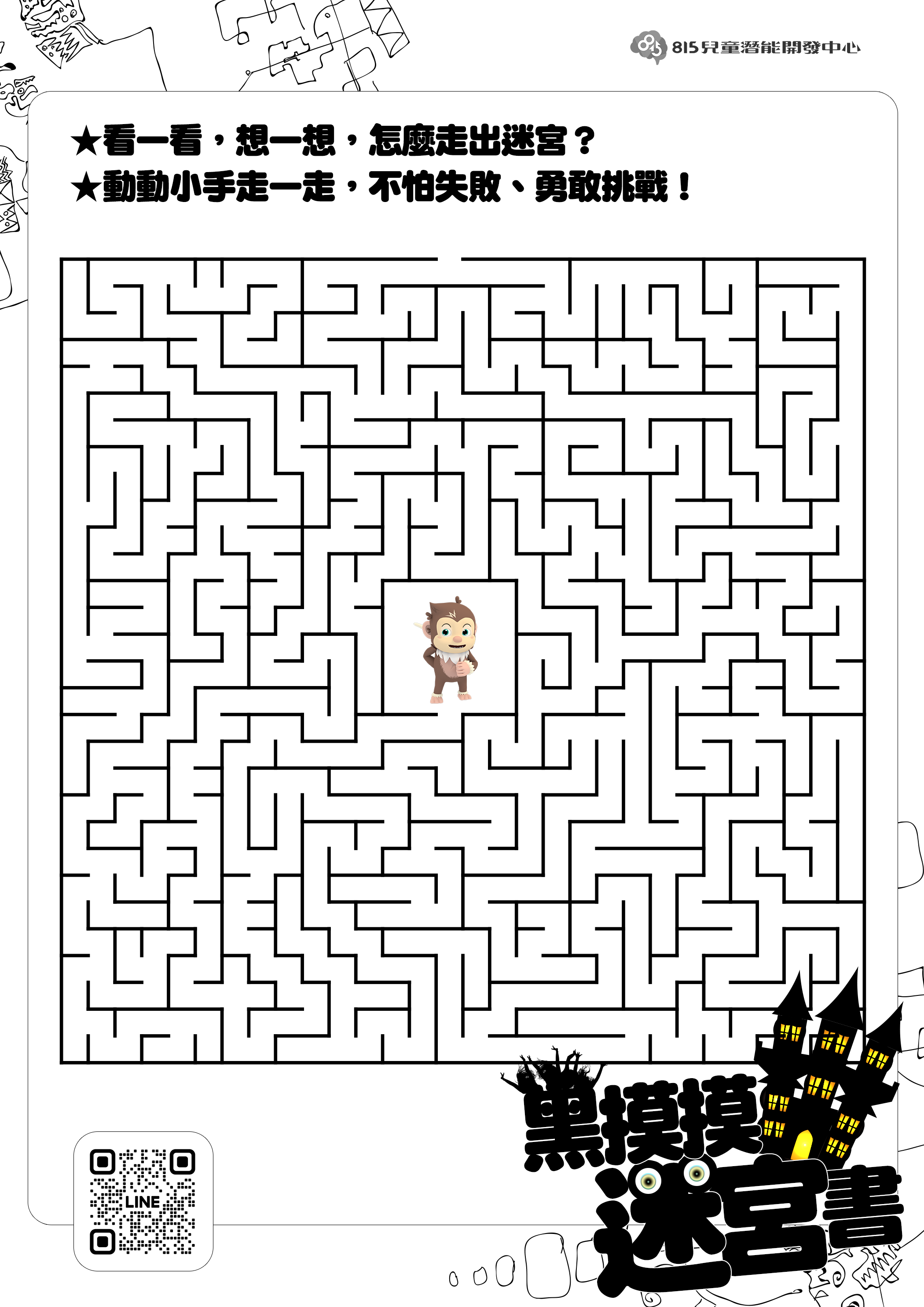 讓孩子玩走迷宮遊戲的好處,在於用手指頭或拿筆沿著路線移動的動作,有助於打好寫字的基礎。跟著愛孟奇在黑摸摸迷宮學習單上練運筆,直線、斜線、橫線、曲線、三角、方形、圓形、愛心、任意形狀,幫助孩子的肌肉與動作發展更靈活!