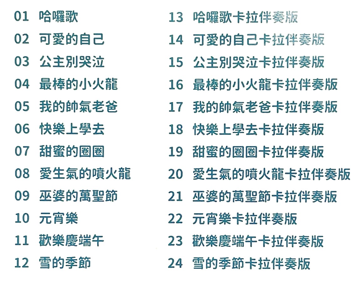 專輯內附加了伴奏版,孩子可以自由發揮,表現即興的想像力,可以依學習的各種需要,帶領孩子唱遊活動,更是家長與孩子共感共享美好時光的魔法泉源!