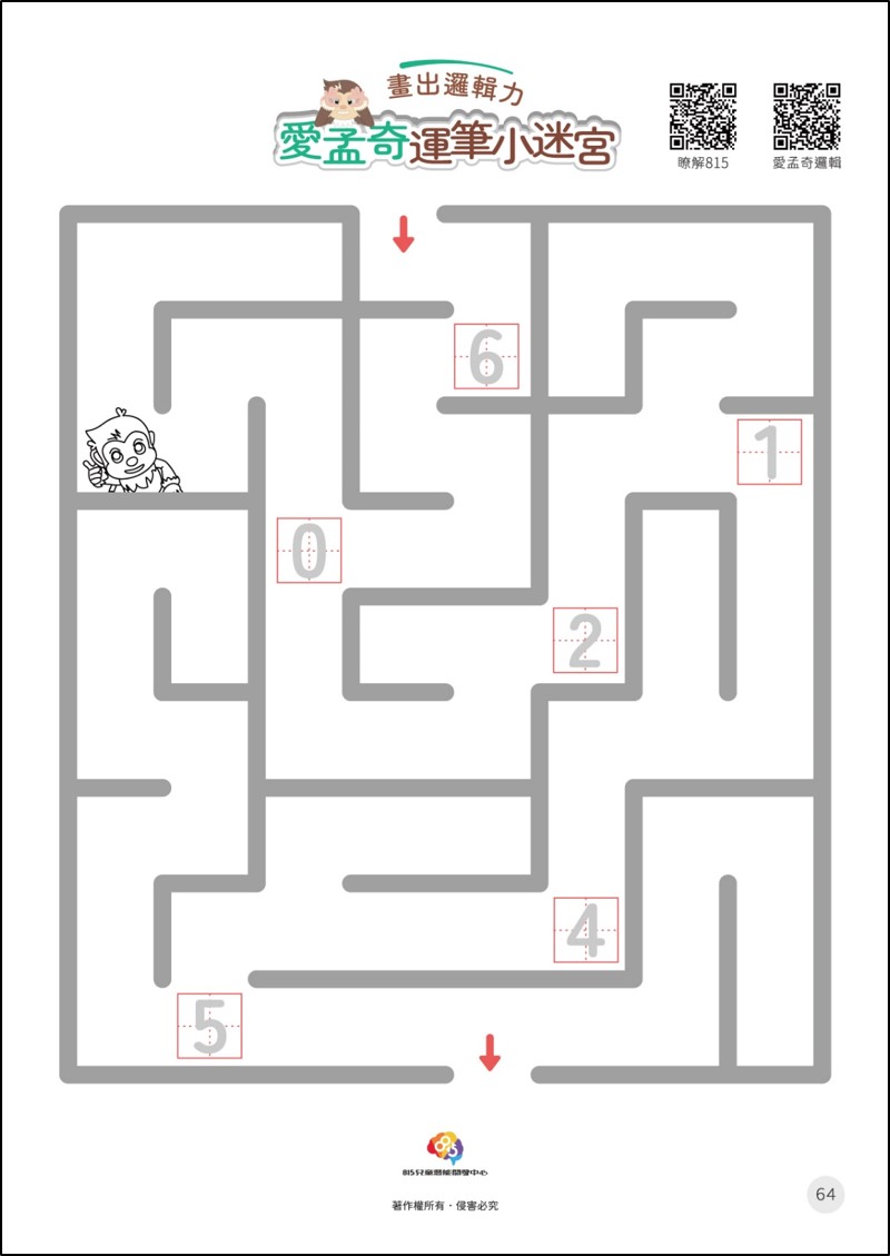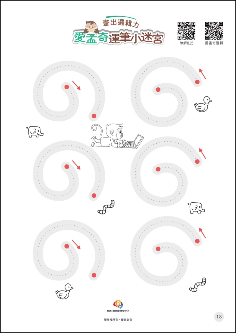 孩子們最愛的迷宮遊戲,轉來彎去的線條,要集中注意力才能到達目的地,是遊戲,也是對孩子視覺與手腕使用的最棒練習!