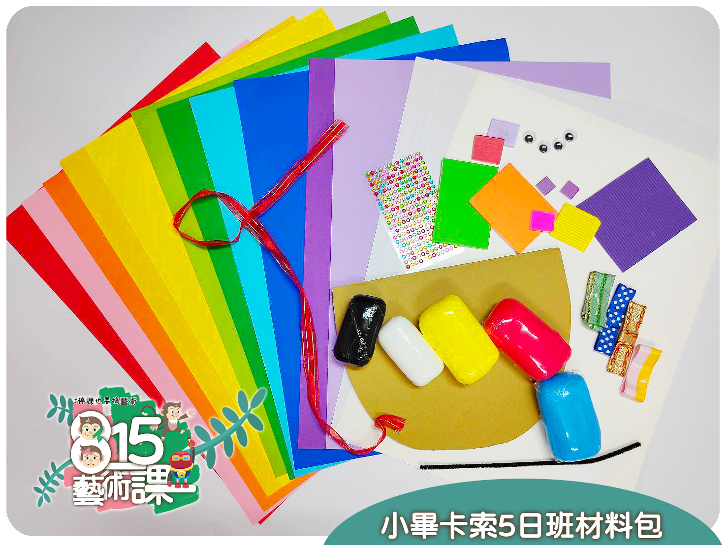 內容物:書面紙、珍珠板、瓦楞紙、厚紙版、黏土、水彩紙、寶石貼紙、動動眼、緞帶、鋁線