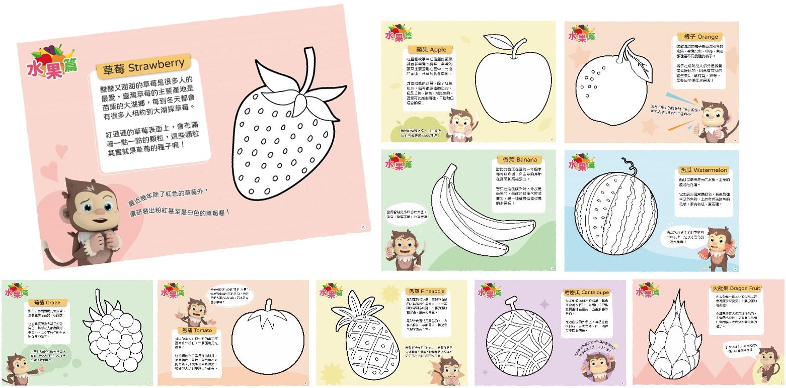 全系列規劃了7大主題,包括地圖篇、水果篇、動物篇、美食篇、景點篇、文化篇及自然篇,共100頁的精彩內容,融合知識性與趣味性,讓孩子在繪畫與親子互動中開啟探索與學習之旅。