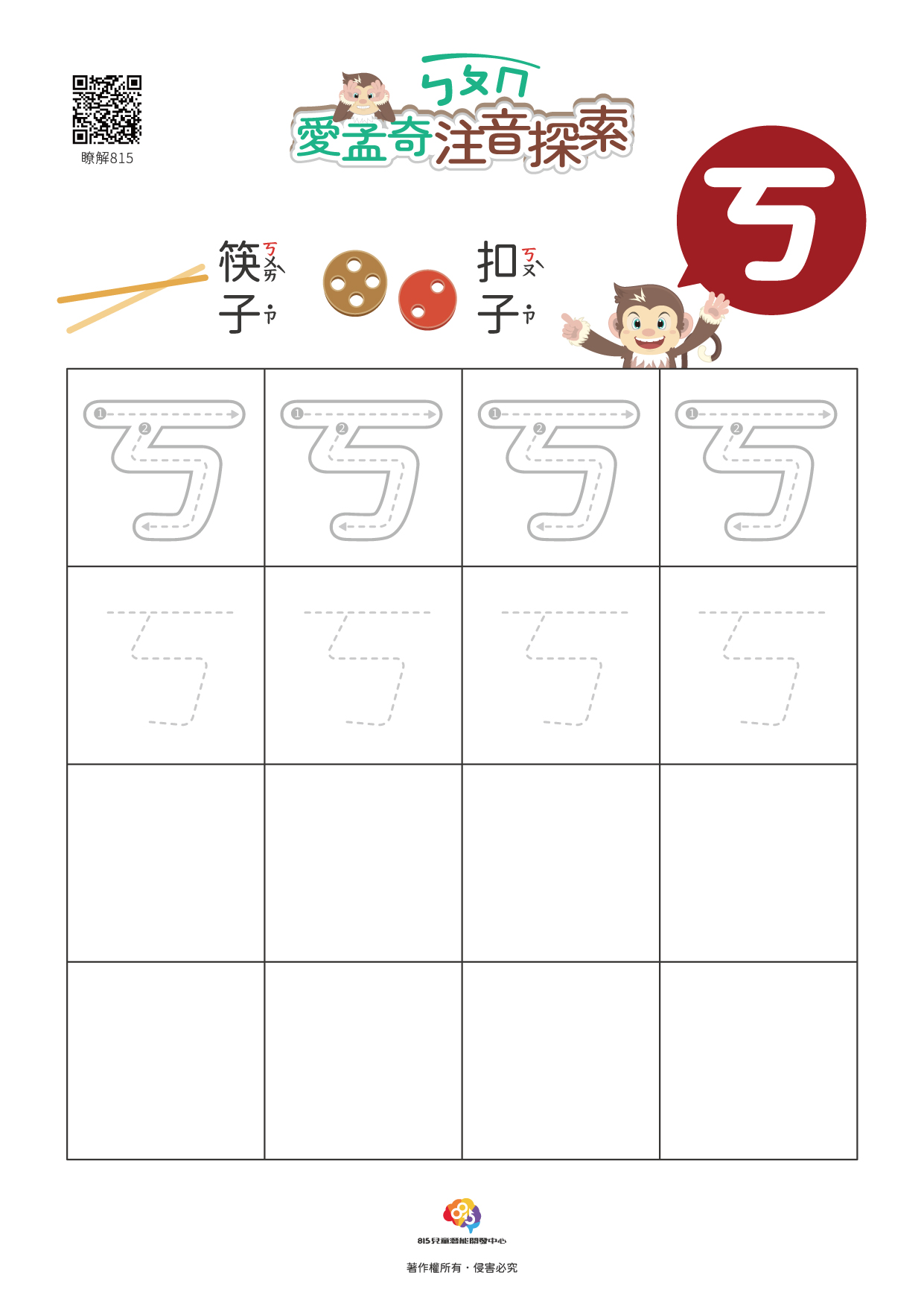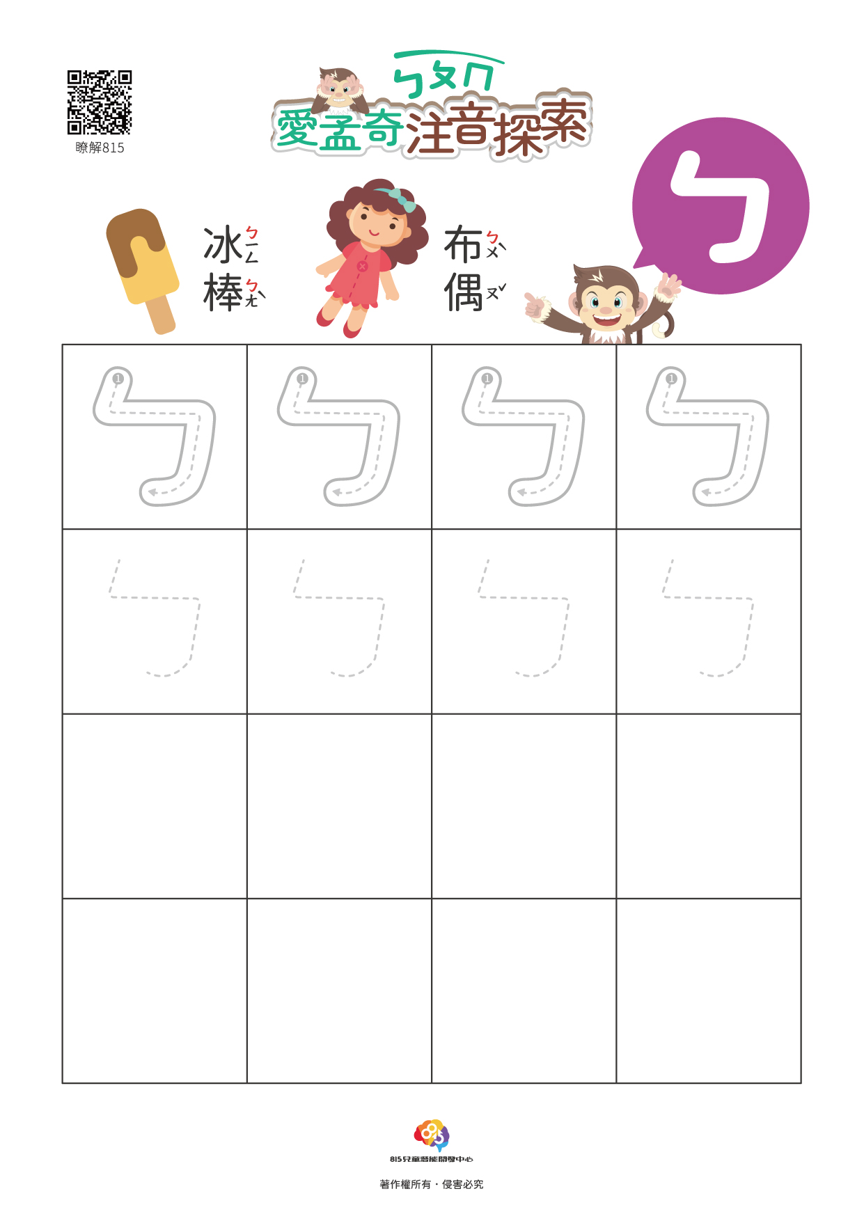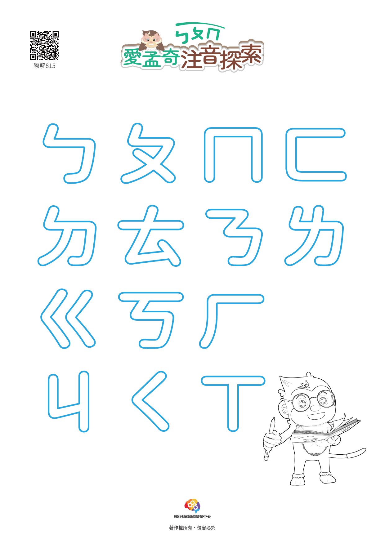 愛孟奇ㄅㄆㄇ注音探索,讓抽象的符號變得有趣,40頁全彩設計,除了可認識37個注音符號與74個常見用詞,還可藉此播下提筆寫字的小種子,讓幼兒的心中慢慢萌芽發展日後愛寫字、愛創作的潛能!