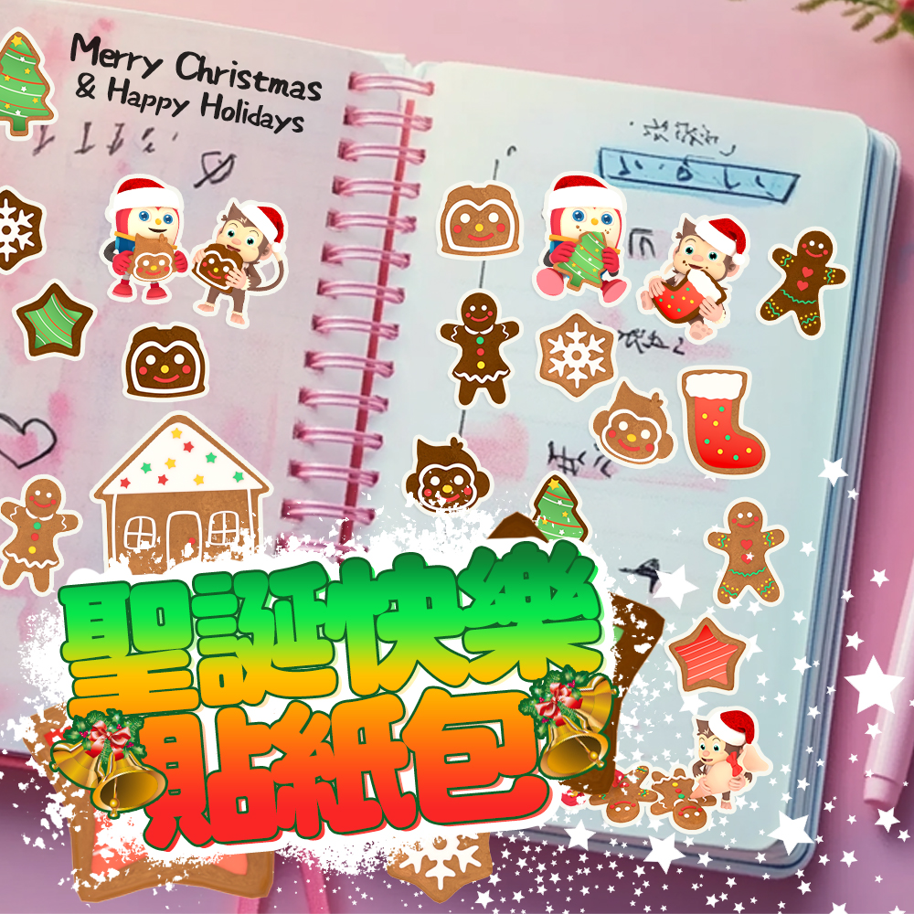 貼紙包集合了超可愛的薑餅人、聖誕樹、禮物襪、薑餅屋、雪花等經典元素,讓您的手帳、卡片、禮物包裝都充滿節日的溫暖氛圍!